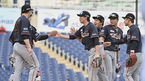 [OSEN=창원, 이석우 기자] 1일 창원 NC파크에서 ‘2022 신한은행 SOL KBO리그’ NC 다이노스와 한화 이글스의 경기가 열렸다.한화 이글스 선수들이 NC 다이노스를 2-1로 누르고 승리한 후 기쁨을 나누고 있다. 2022.05.01 / foto0307@osen.