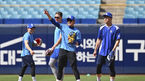 [OSEN=대구, 이석우 기자] 3일 대구 삼성라이온즈파크에서 ‘2022 신한은행 SOL KBO리그’ 삼성 라이온즈와 NC 다이노스의 경기가 열린다.삼성 라이온즈 강민호, 뷰캐넌이 김지찬, 이재현과 함께 유격수 포지션에서 훈련을 하