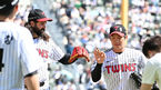 [OSEN=대구, 이석우 기자] 5일 대구 삼성라이온즈파크에서 ‘2022 신한은행 SOL KBO리그’ 삼성 라이온즈와 NC 다이노스의 경기가 열렸다.NC 다이노스 서호철이 3회초 노진혁의 1타점 적시타때 득점을 올리고 하이파이브를 하고