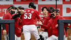 [OSEN=부산, 이석우 기자] 7일 부산 사직구장에서 ‘2022 신한은행 SOL KBO리그’ 롯데 자이언츠와 삼성 라이온즈의 경기가 열렸다.롯데 자이언츠 나균안과 한동희가 5회초 2사 3루 삼성 라이온즈 김헌곤의 1루 직선타를 잡은 정