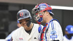 [OSEN=부산, 이석우 기자] 7일 부산 사직구장에서 ‘2022 신한은행 SOL KBO리그’ 롯데 자이언츠와 삼성 라이온즈의 경기가 열렸다.삼성 라이온즈 강민호가 1회말 뷰캐넌의 볼에 맞은 롯데 자이언츠 한동희를 토닥이고 있다. 202