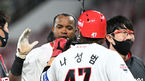 [OSEN=잠실, 최규한 기자] 10일 오후 서울 잠실야구장에서 ‘2022 신한은행 SOL KBO리그’ LG 트윈스와 한화 이글스의 경기가 열렸다.8회말 1사 3루 상황 LG 서건창에게 스트레이트 볼넷을 내준 한화 신인투수 문동주가 아쉬워하