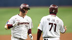 [OSEN=부산, 이석우 기자] 11일 부산 사직구장에서 ‘2022 신한은행 SOL KBO리그’ 롯데 자이언츠와 NC 다이노스의 경기가 열렸다.롯데 자이언츠 김민수와 박승욱이 6회말 무사 1,2루 지시완의 동점 2타점 적시타 때 득점을 올리