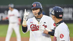 [OSEN=잠실, 지형준 기자] 11일 서울 잠실구장에서 2022 신한은행 SOL KBO리그 LG 트윈스와 한화 이글스의 경기가 열렸다.2회초 무사 1루에서 한화 노시환이 좌중간 안타를 날리고 기뻐하고 있다. LG 1루수는 채은성. 2022.05.11 /jpnews@osen.co