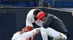 [OSEN=광주, 이대선 기자] 11일 오후 광주-기아챔피언스필드에서 '2022 신한은행 SOL KBO 리그' KIA 타이거즈와 KT 위즈의 경기가 열렸다.2회초 무사에서 KIA 류지혁이 KT 박경수의 타구를 맞고 고통스러워하고 있다. 2022.05.11 /sunday@osen.co.k
