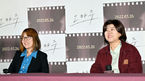[OSEN=민경훈 기자] 12일 오후 서울 한강로 CGV 용산아이파크몰에서 영화 '오마주' 언론배급 시사회가 열렸다.시사회를 마치고 신수원 감독과 배우 이정은이 입장하고 있다. 2022.05.12 / rumi@osen.co.kr
