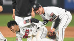 [OSEN=수원, 김성락 기자] KT가 짜릿한 끝내기로 4연패에서 탈출했다.KT는 17일 수원 KT위즈파크에서 열린 LG와의 경기에서 3-2 끝내기 승리를 거뒀다.승리가 확정된 순간 KT 조용호와 신본기가 기쁨을 나누고 있다. 2022.05.17 /ksl0919@osen.