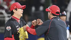 [OSEN=부산, 이석우 기자] 19일 부산 사직구장에서 ‘2022 신한은행 SOL KBO리그’ 롯데 자이언츠와 KIA 타이거즈의 경기가 열렸다.KIA 타이거즈 양현종이 최연소 150승을 달성하고 김종국 감독에게 축하 꽃다발을 받고 있다. 2022.0