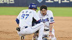[OSEN=인천, 이대선 기자] 24일 오후 인천 SSG 랜더스필드에서 '2022 신한은행 SOL KBO 리그' SSG 랜더스와 롯데 자이언츠의 경기가 열렸다.9회초 1사 1루에서 롯데 반즈가 마운드를 내려가며 안중열과 하이파이브를 하고 있다. 2022.05.24 /