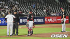 [OSEN=사직, 한용섭 기자]LG 투수 고우석이 벤치의 마운드 방문 횟수 착각으로 위기 상황에서 강제 교체를 당했다.2일 부산 사직구장에서 열린 LG-롯데전. 2-2 동점인 연장 10회말, 고우석이 등판했다. 선두타자 안치홍에게 우중간을