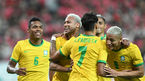 [OSEN=서울월드컵경기장, 이대선 기자] 2일 오후 서울 마포구 상암동 서울월드컵경기장에서 대한민국과 브라질의 평가전이 진행됐다.전반 브라질 네이마르가 페널티킥을 성공시키고 루카스 파케타, 하피냐와 세리머니를 하고