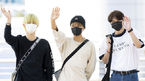 [OSEN=지형준 기자] 7일 오전 가수 블리처스(진화,크리스,우주,주한,고유,샤,루탄)가 태국 일정을 위해 인천국제공항을 통해 출국했다.블리처스 주한, 우주, 진화가 출국을 위해 이동하며 팬들에 인사를 하고 있다. 2022.06.07 /jpnews@o