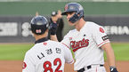 [OSEN=부산, 이석우 기자] 8일 부산 사직구장에서 ‘2022 신한은행 SOL KBO리그’ 롯데 자이언츠와 삼성 라이온즈의 경기가 열렸다.롯데 자이언츠 안치홍이 1회말 피터스의 1타점 적시타 때 득점을 올리고 서튼 감독과 하이파