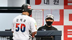 [OSEN=고척, 이대선 기자] 9일 오후 서울 고척스카이돔에서 2022 신한은행 SOL KBO리그 키움 히어로즈와 KT 위즈의 경기가 열렸다.1회초 2사 2루에서 KT 이강철 감독이 장성우의 중전 적시타 때 홈을 밟은 강백호를 향해 미소 짓고 있다.