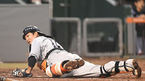 [OSEN=대전, 김성락 기자] 15일 오후 대전 한화이글스파크에서 ‘2022 신한은행 SOL KBO리그’ 한화 이글스와 롯데 자이언츠의 경기가 열렸다.4회초 무사 만루 롯데 황성빈의 투수 앞 땅볼 때 한화 포수 최재훈이 3루 주자 박승