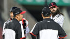 [OSEN=잠실,박준형 기자] 16일 오후 서울 잠실구장에서 ‘2022 신한은행 SOL KBO리그’ LG 트윈스와 삼성 라이온즈의 경기가 진행됐다.6회초 2사 이후 연속안타 허용한 LG 선발투수 켈리가 경헌호 투수 코치와 이야기를 나누고