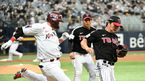 [OSEN=고척, 이대선 기자] LG가키움과 연장 접전에서천신만고 끝에 승리했다.LG는 17일 서울 고척스카이돔에서 열린 키움과의경기에서 연장 10회 4-2로 승리했다.10회말 2사 만루에서 LG 고우석이 키움 김웅빈을 땅볼 처리하고 있다. 2
