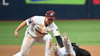 [OSEN=고척, 이대선 기자] 17일 오후 서울 고척스카이돔에서 2022 신한은행 SOL KBO리그 키움 히어로즈와 LG 트윈스의 경기가 열렸다.8회초 2사 1루에서 키움 김혜성이 LG 채은성의 도루를 저지하고 있다. 2022.06.17 /sunday@osen.co.kr