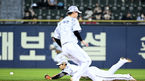 [OSEN=잠실, 지형준 기자] 24일 오후 서울 잠실구장에서 2022 신한은행 SOL KBO리그 두산 베어스와 KIA 타이거즈의 경기가 열렸다.7회초 2사 1루에서 두산 강승호가 KIA 나성범의 중전안타에 몸을 날리고 있다. 2022.06.24 /jpnews@osen.co.kr