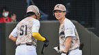 [OSEN=부산, 이석우 기자] 25일 부산 사직구장에서 ‘2022 신한은행 SOL KBO리그’ 롯데 자이언츠와 키움 히어로즈의 경기가 열렸다.키움 히어로즈 김혜성이 3회초 득점을 올린 이정후와 기쁨을 나누고 있다. 2022.06.25 / foto0307@os