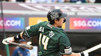[OSEN=인천, 최규한 기자] 25일 오후 인천 SSG랜더스필드에서 ‘2022 신한은행 SOL KBO리그’ SSG 랜더스와 NC 다이노스의 경기가 열렸다.6회말 1사 2루 상황 SSG 최지훈이 달아나는 1타점 적시타를 날리고 1루에 안착해 기뻐하고 있
