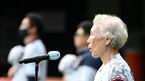 [OSEN=잠실, 지형준 기자] 25일 오후 서울 잠실구장에서 2022 신한은행 SOL KBO리그 두산 베어스와 KIA 타이거즈의 경기가 열렸다.6.25 여학도병으로 참전한 정기숙 씨가 애국가를 부르고 있다. 2022.06.25 /jpnews@osen.co.kr