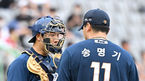 [OSEN=인천, 최규한 기자] 25일 오후 인천 SSG랜더스필드에서 ‘2022 신한은행 SOL KBO리그’ SSG 랜더스와 NC 다이노스의 경기가 열렸다.4회말 1사 1루 상황 NC 포수 정범모가 마운드를 방문해 선발 송명기와 대화를 나누고 있다. 2