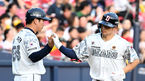 [OSEN=잠실, 지형준 기자] 25일 오후 서울 잠실구장에서 2022 신한은행 SOL KBO리그 두산 베어스와 KIA 타이거즈의 경기가 열렸다.3회말 무사에서 두산 김재환이 우월 솔로포를 날리고 김주찬 코치와 하이파이브를 하고 있다. 2022.06.25 /