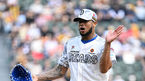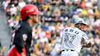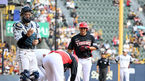 [OSEN=잠실, 지형준 기자] 24일 오후 서울 잠실구장에서 2022 신한은행 SOL KBO리그 두산 베어스와 KIA 타이거즈의 경기가 열렸다.1회초 2사 만루에서 두산 미란다가 KIA 김선빈에게 밀어내기 몸에 맞는 볼을 허용하며 허탈한 미소를 짓