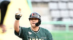 [OSEN=부산, 이석우 기자] 25일 부산 사직구장에서 ‘2022 신한은행 SOL KBO리그’ 롯데 자이언츠와 키움 히어로즈의 경기가 열렸다.키움 히어로즈 이정후가 3회초 1사 1,2루 2타점 3루타를 치고 활짝 웃고 있다. 2022.06.25 / foto0307@