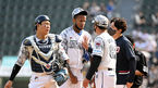 [OSEN=잠실, 지형준 기자] 25일 오후 서울 잠실구장에서 2022 신한은행 SOL KBO리그 두산 베어스와 KIA 타이거즈의 경기가 열렸다.1회초 1사 만루에서 두산 권명철 코치가 마운드에 올라 미란다와 이야기를 나누고 있다. 미란다는 1회