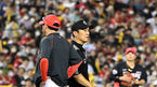 [OSEN=잠실, 지형준 기자] 25일 오후 서울 잠실구장에서 2022 신한은행 SOL KBO리그 두산 베어스와 KIA 타이거즈의 경기가 열렸다.8회말 2사 1,2루에서 KIA 서재응 코치가 두산 페르난데스 타석에 마운드에 2번 방문해 장현식을 정해영으
