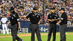 [OSEN=잠실, 지형준 기자] 25일 오후 서울 잠실구장에서 2022 신한은행 SOL KBO리그 두산 베어스와 KIA 타이거즈의 경기가 열렸다.8회말 2사 1,2루에서 KIA 장현식이 정해영으로 교체되는 과정에서 이민호 구심을 비롯한 4심이 모여 이야