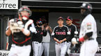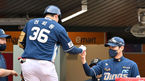[OSEN=인천, 민경훈 기자] 26일 오후 인천 SSG랜더스필드에서 ‘2022 신한은행 SOL KBO리그’ SSG 랜더스와 NC 다이노스의 경기가 열렸다.4회초 NC 선두타자 권희동이 좌월 선취 솔로 홈런을 날린 후 덕아웃에서 강인권 감독 대행