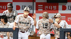 [OSEN=고척, 이대선 기자] 29일 오후 서울 고척스카이돔에서 2022 신한은행 SOL KBO리그 키움 히어로즈와 KIA 타이거즈의 경기가 열렸다.7회말 2사 2루 키움 홍원기 감독이 이지영의 적시타 때 홈을 밟은 이용규를 축하하고 있다. 2022.06.