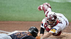 [OSEN=고척, 김성락 기자] 3일 오후 서울 구로구 고척스카이돔에서 '2022 신한은행 SOL KBO리그' 키움 히어로즈와 한화 이글스의 경기가 열렸다.1회초 2사 1루 한화 이진영의 2루타 때 1루주자 김인환이 홈까지 내달렸으나 키움 포수