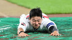 [OSEN=광주, 이대선 기자] 7일광주-기아챔피언스필드에서 열린 '2022 신한은행 SOL KBO 리그' KT 위즈와 KIA 타이거즈의 팀 간 11차전이 경기 도중 내린 폭우로 노게임이 됐다.경기 종료 후 KIA 김규성이 우천 세리머니를 하고 있다. 2022.07