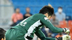[OSEN=춘천, 민경훈 기자] 8일 오후 강원도 춘천시 춘천송암스포츠타운 주경기장에서 '하나원큐 K리그1 2022' 강원FC와 김천상무의 경기가 열렸다.전반 김천 조규성이 골문으로 파고 들던 중 강원 유상훈의 무릎에 턱을 맞고 있다. 2