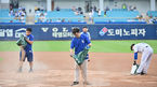 [OSEN=대구, 이석우 기자] 8일 대구 삼성라이온즈파크에서 ‘2022 신한은행 SOL KBO리그’ 삼성 라이온즈와 SSG 랜더스의 경기가 열렸다.구장관리 직원들이 경기 직전 내린 비로 젖은 그라운드를 정리하고 있다. 2022.07.08 / foto0307