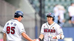 [OSEN=잠실, 조은정 기자]8일 오후 서울 송파구 잠실야구장에서 '2022 신한은행 SOL KBO 리그'두산 베어스와 LG 트윈스의 경기가 열렸다.1회말 무사 두산 페르난데스가 안타를 날린 뒤 세리머니를 하고 있다. 2022.07.08 /cej@osen.co.kr