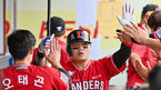[OSEN=잠실, 이대선 기자] 10일 오후 서울 잠실야구장에서 '2022 신한은행 SOL KBO 리그' 두산 베어스와 LG 트윈스의 경기가 열렸다.2회초 1사 1,3루에서 LG 이재원의 좌전 적시타 때 홈을 밟은 3루주자 문보경이 더그아웃에서 동료들의
