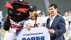 [OSEN=잠실, 조은정 기자] 15일 잠실구장에서 열린 2022 퓨처스 올스타전에서 남부리그가 북부리그를 3-2로 제압했다.시상식에서 남부리그 상무 김기훈이 우수투수상을 수상하며 허구연 총재와 포즈를 취하고 있다. 2022.07.15 /cej@osen