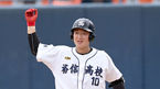 [OSEN=목동, 김성락 기자] 21일 오후 서울 목동야구장에서 ‘제77회 청룡기 전국고교야구선수권대회’ 유신고와 경기고의 8강전 경기가 열렸다.1회말 1사 1, 2루 유신고 변헌성이 안타를 날린 뒤 세레모니를 하고 있다. 2022.07.