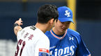 [OSEN=고척, 지형준 기자] 24일 오후 서울 고척스카이돔에서 2022 신한은행 SOL KBO리그 키움 히어로즈와 삼성 라이온즈의 경기가 열렸다.3회말 2사 1,2루에서 삼성 허윤동과 김재성이 이야기를 나누고 있다. 2022.07.24 /jpnews@osen.co.kr