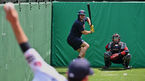 [OSEN=부산, 이석우 기자] 24일 부산 사직구장에서 ‘2022 신한은행 SOL KBO리그’ 롯데 자이언츠와 KIA 타이거즈의 경기가 열린다.롯데 자이언츠 새 외국인 타자 잭 렉스가 불펜에서 김진욱의 공을 직접 보며 타격 감을 익히고