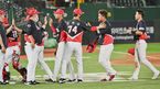 [OSEN=부산, 이석우 기자] 24일 부산 사직구장에서 ‘2022 신한은행 SOL KBO리그’ 롯데 자이언츠와 KIA 타이거즈의 경기가 열렸다.KIA 타이거즈 김종국 감독이 롯데 자이언츠에 23-0으로 완승한 후 선수들과 하이파이브를 마치고