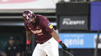 [OSEN=잠실, 지형준 기자] 27일 오후 서울 잠실구장에서 2022 신한은행 SOL KBO리그 두산 베어스와 롯데 자이언츠의 경기가 열렸다.3회초 2사에서 롯데 렉스가 중전안타를 날리고 기뻐하고 있다. 렉스는 KBO리그 첫 안타. 2022.07.27 /jpnews