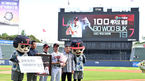 [OSEN=잠실, 지형준 기자] 30일 오후 서울 잠실구장에서 2022 신한은행 SOL KBO리그 LG 트윈스와 KT 위즈의 경기가 열렸다.경기에 앞서 LG 고우석의 100세이브 KBO 시상식이 열리고 있다. 2022.07.30 /jpnews@osen.co.kr