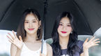 [OSEN=민경훈 기자] 5일 오전 서울 영등포구 KBS 신관에서 KBS 2TV ‘뮤직뱅크’ 리허설이 진행됐다.그룹 스테이씨 (STAYC)의 윤과 세은이 출근길에 입장하며 포즈를 취하고 있다. 2022.08.05 / rumi@osen.co.kr