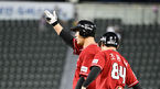 [OSEN=잠실,박준형 기자] 14일 오후 서울 잠실구장에서 ‘2022 신한은행 SOL KBO리그’ 두산 베어스와 SSG 랜더스의 경기가 진행됐다.7회초 1사 1루 SSG 이재원이 안타를 날리고 세리머니를 하고 있다. 2022.08.14 / soul1014@osen.co.kr